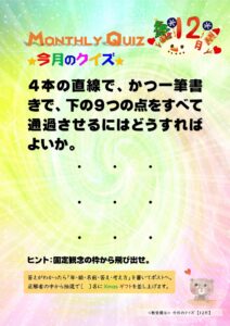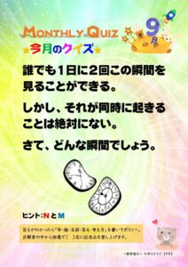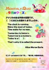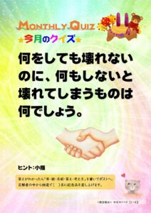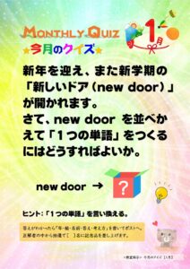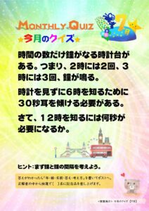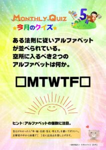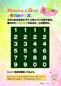 毎月の初日に教室にクイズを貼りだすことでクラス内の会話を活性化するものです。また、クイズを通じて生徒の興味を引き出し、学びへの意欲を高めます。