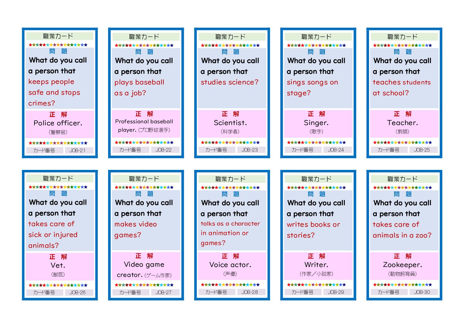 pdf職業カード<関係代名詞>〔職業21-30〕
