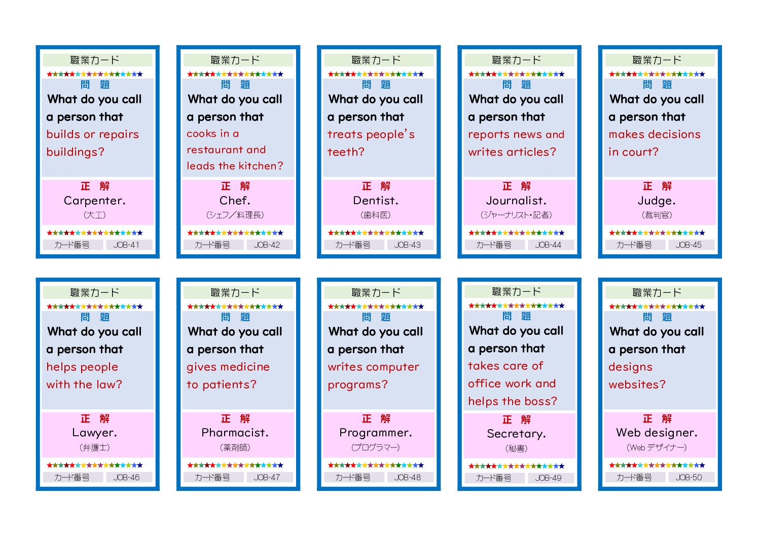 pdf職業カード<関係代名詞>〔職業41-50〕 By 林鳴鶴 | Published 2025年11月6日